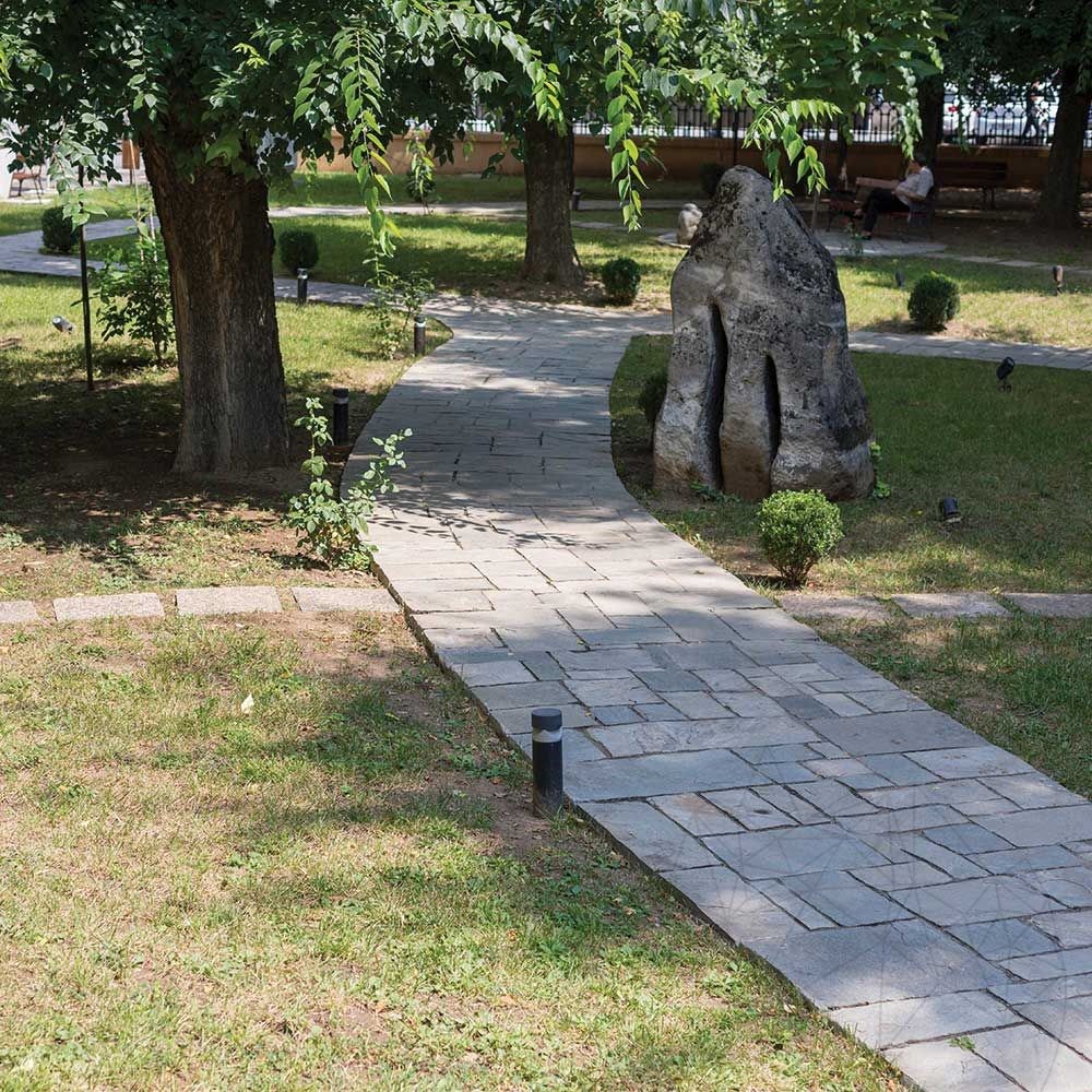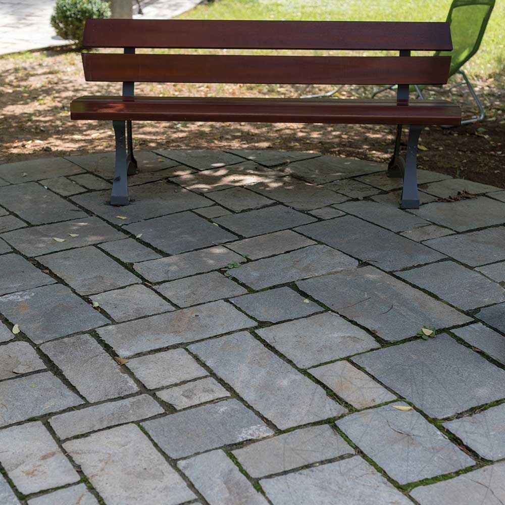 Nawierzchnie zewnętrzne, chodniki lub projekty publiczne mogą wykorzystywać ten rodzaj naturalnego, ręcznie ciętego łupka Kavala Roman Pattern o rozszczepionym wykończeniu i grubości 3-4 cm. Ten dekoracyjny kamień często wywołuje rustykalne lub antyczne wrażenie. Dzięki ręcznie uzyskanym krawędziom i lekko nierównej strukturze, zewnętrzna nawierzchnia łupkowa Kavala Roman Pattern doskonale łączy rzymski wygląd z atmosferą starych wiejskich osad. Wysyłka międzynarodowa, niezależnie od ilości.