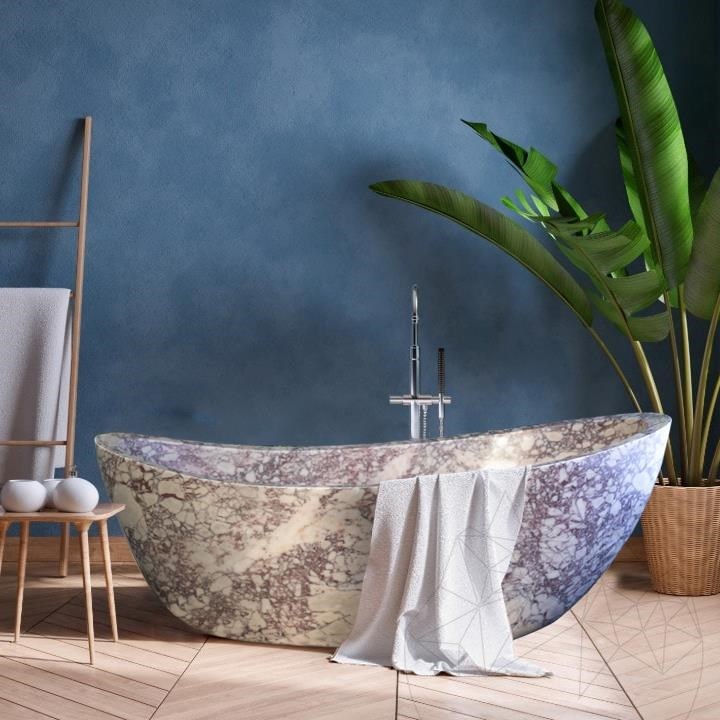Marmurowa wanna Arabesqueo Faro jest wyjątkowa wśród wszystkich wanien, ze względu na swoją ogromną wszechstronność. Szeroka gama kolorystyczna poleca ją do łazienek o minimalistycznym wystroju lub zdominowanych przez proste odcienie bieli. Jest to produkt zapewniający charakterystyczny dotyk, punkt przyciągający w każdym pomieszczeniu i arcydzieło Twoich elementów Autografu.