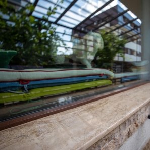 Trwałość klasycznego trawertynu o kroju krzyżowym w połączeniu z łatwą pielęgnacją stanowią bardzo przekonujące argumenty przemawiające za wyborem tego popularnego ostatnio wśród Rumunów materiału do dekoracji obszarów publicznych lub mieszkalnych. Materiał ten można łatwo ciąć szlifierką kątową lub tarczą diamentową.