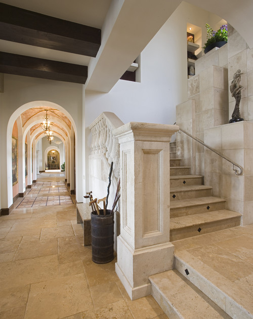 Trawertyn , cieszący się dużą popularnością, jest trwałym i trwałym kamieniem naturalnym, wprowadzającym ciepły nastrój do każdej przestrzeni mieszkalnej, dzięki wariacji kolorystycznej, która przywodzi na myśl piasek na słonecznej plaży. Trawertyn nie jest dostępny w tej samej niesamowitej gamie kolorystycznej co marmur, ale jest poszukiwany ze względu na dyskretne, ziemiste odcienie, które podkreślają naturalny wygląd każdego projektu dekoracyjnego. Trawertyn jest idealny do okładzin schodów i podstopnic, lub można go użyć jako kombinacji schodów obłożonych drewnem i podstopnic obłożonych trawertynem. Kamień naturalny idealnie pasuje do drewna w dekoracji wnętrz, a mieszanka tekstur dodaje uroku Twojej przestrzeni życiowej.