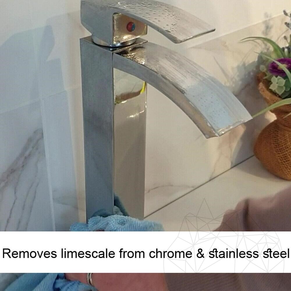 - Do usuwania pozostałości kamienia : Spryskaj produkt na dotkniętą powierzchnię i wyszoruj czarną gąbką. Następnie przetrzyj ściereczką z mikrofibry.
