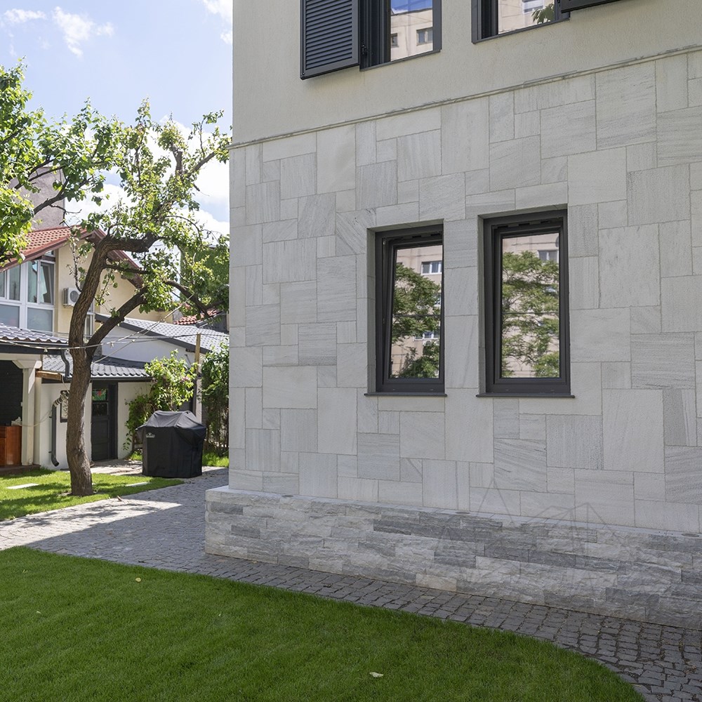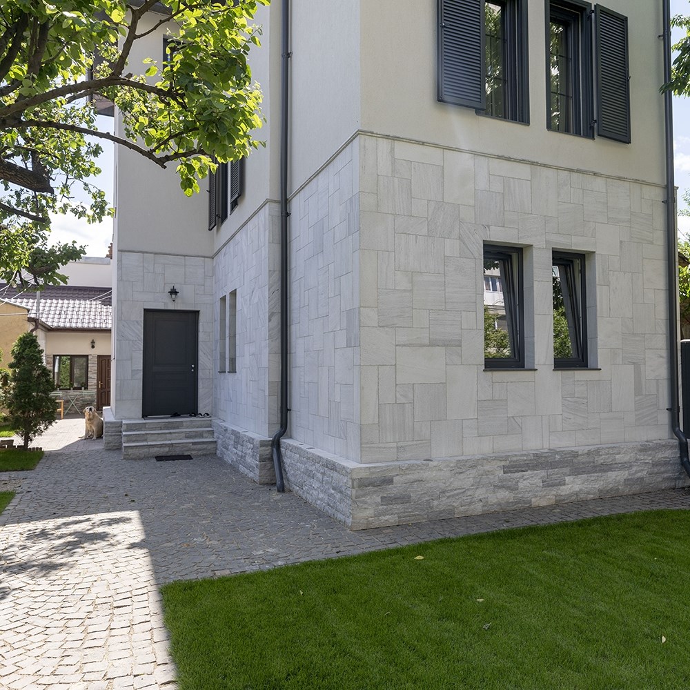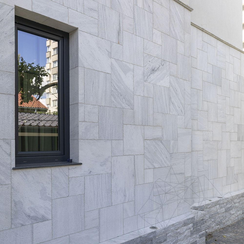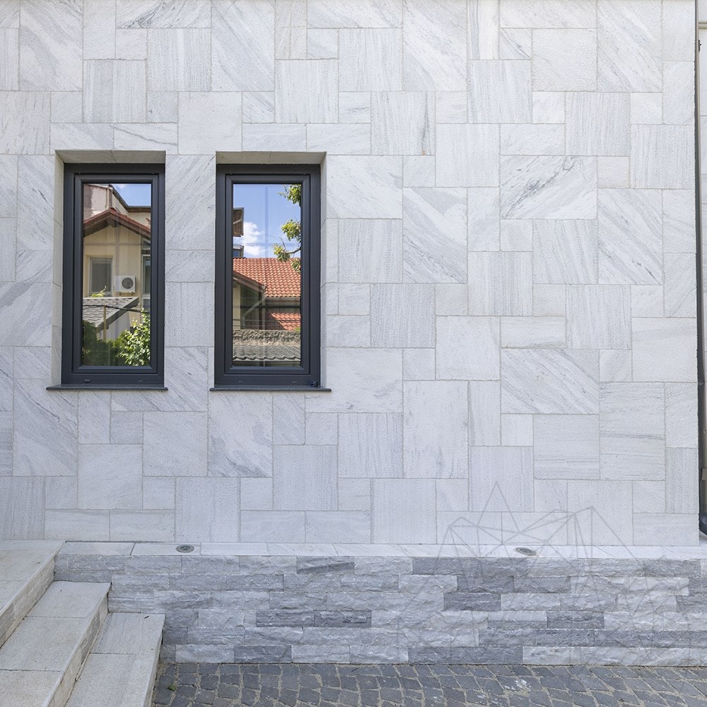 Ten rodzaj marmuru może być stosowany w pomieszczeniach wilgotnych, zadaszonych i odkrytych posadzkach tarasowych oraz nawierzchniach zewnętrznych - a wszystko to podkreślone specjalnym wyglądem Marmuru Kavala, trwałością płytek (grubość 2 cm) i zwiększoną antypoślizgowością groszkowanej powierzchni. Dla osób z niekonwencjonalnymi pomysłami, ten zestaw francuskich wzorów Kavala Marble może być używany do okładzin, zarówno na zewnątrz, jak i do dekoracji wnętrz. Groszkowane wykończenie daje pełny dostęp do esencji kamienia i lepiej odczujesz wibracje natury w udekorowanej nim przestrzeni. A jeśli młotkowane wykończenie podkreśla wewnętrzną strukturę tekstury, grafika z francuskim wzorem wprowadza wrażenie wysokiej elegancji do udekorowanego obszaru.