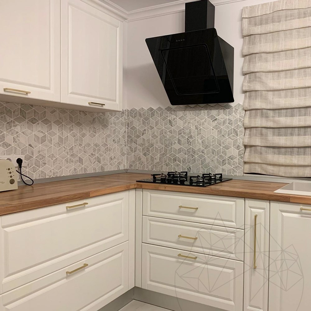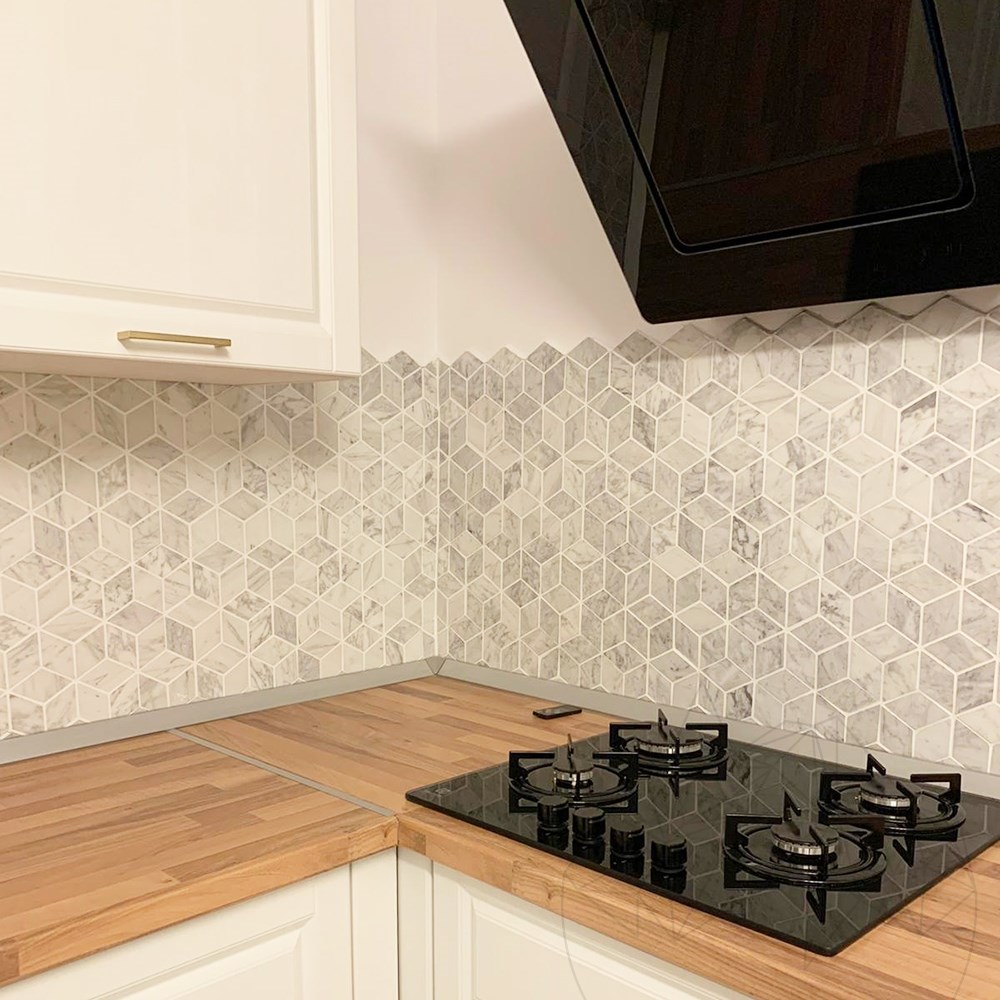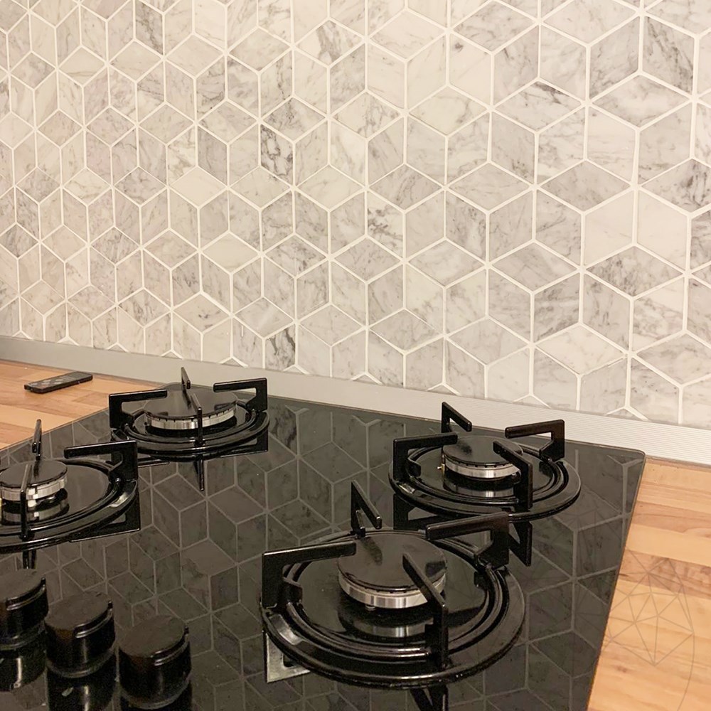 Żywa ściana pokryta marmurową mozaiką Bianco Carrara Honed Cube Design Mosaic jest hołdem dla tego magicznego kamienia naturalnego, ponieważ nowoczesny dotyk projektu pozwala duchowi cieszyć się nim w optymistycznym otoczeniu. Łazienka ozdobiona tym materiałem niesie ze sobą perspektywę ukrytych głębi, a odbicie światła wyznacza przestrzeń. Backsplash z tej mozaiki to dotyk potrzebny w Twojej kuchni, aby uzyskać prawdziwą personalizację.