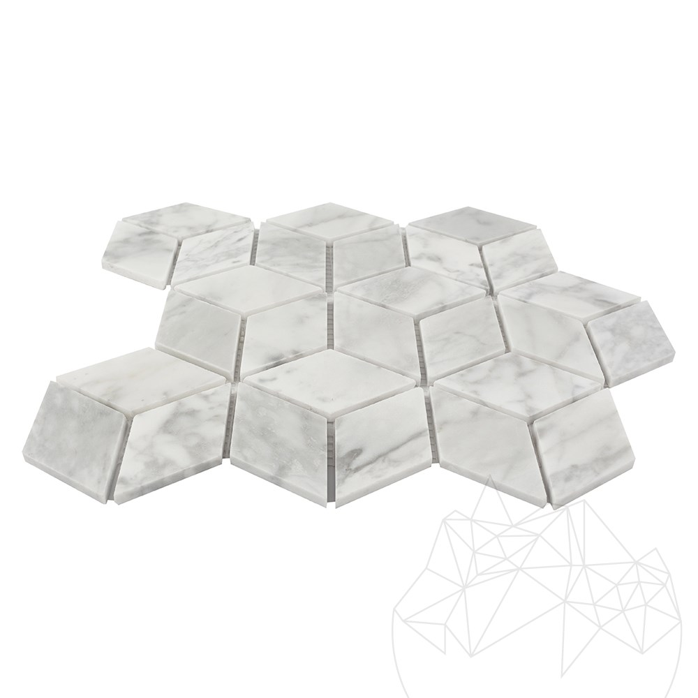 Mozaika wykonana z najsłynniejszego marmuru na świecie to przyjemność dla zmysłów. Bajeczny design, będący efektem idealnego połączenia kwadratowych kształtów, które profilują kubiczną perspektywę, ponadczasowe kolory zebrane z lochów starych kamieniołomów oraz szlifowane, relaksujące wykończenie, to wszystkie fundamenty kształtowania prawdziwego modernizmu. Bianco Carrara Marble Honed Cube Design Mosaic jest zalecana do każdego projektu dekoracyjnego, zarówno jako dotyk, dla całej ściany, jak i tylko określonego obszaru ściany. Lekki kontrast bladego koloru raczej uwydatni kubiczne kształty, rozszerzając ścianę lub wychodząc z jej osi, wszystko to, co należy do systematycznego kształtu, wypełnionego równowagą i harmonią.
