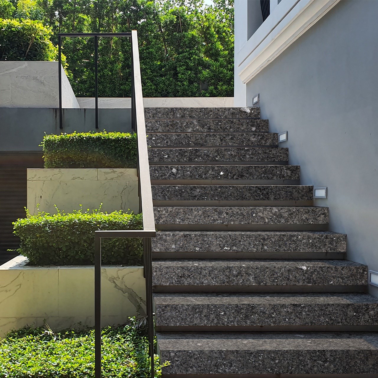 Granit Black Pearl staje się urzekający, gdy tylko zauważysz jego czarny jak węgiel kolor. Jego niezrównanej elegancji nie da się znaleźć w żadnym innym materiale. Granit Black Pearl z wykończeniem płomienistym jest podkreślony tysiącami odprysków, które łączą się z jego odcieniami. Jego płomieniste wykończenie jest idealne do wilgotnych pomieszczeń i to detale go wyróżniają. Płomienione wykończenie tego granitu uzyskuje się poprzez nałożenie płomienia o temperaturze około 2000 stopni Celsjusza na powierzchnię kamienia. Płomień powoduje, że warstwa wierzchnia rozszerza się i łuszczy, a tym samym ujawnia się chropowata powierzchnia, a ostatecznie różnica grubości płytek wynosi około 1-5 mm.