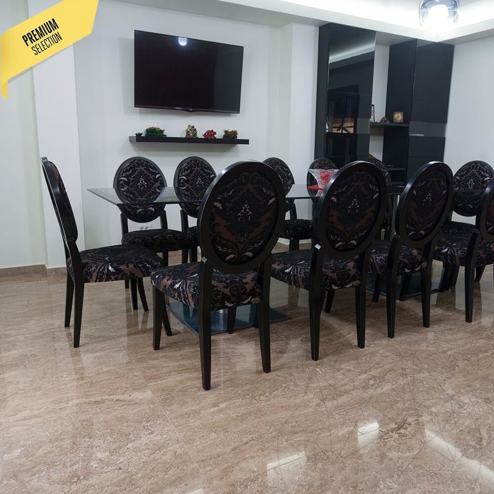 Dzięki swoim właściwościom Latte Travertine jest dobrym przewodnikiem ciepła, dzięki czemu nadaje się do budynków mieszkalnych lub użyteczności publicznej. Ziemisty odcień trawertynu i lśniące kafelki oddadzą wrażenie wystawnego wyglądu, a jeśli zdecydujesz się użyć go do kuchni i łazienki, uzyskasz czysty i jasny wygląd o wydłużonej żywotności.