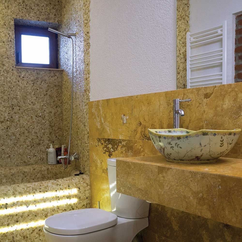 Jeśli chodzi o projektowanie środowiskowe, płytki trawertynowe mogą łatwo stać się główną atrakcją każdej dekoracji. Ten żółty trawertyn cięty krzyżowo może być stosowany wewnątrz w łazienkach, kuchniach, salonach, biurach, korytarzach i tak dalej, zarówno w przestrzeni prywatnej, jak i publicznej. W zależności od koncepcji projektu, możesz również wybrać ten produkt na okładziny, chodniki, stopnie, kominki itp. Na zewnątrz może pozostawić swój ślad na fasadach, ogrodzeniach, ramach, bazach domowych itp. Żółty trawertyn cięty krzyżowo może być dobrym wyborem do nowoczesnego projektu z delikatnymi klasycznymi akcentami. Jego atrakcyjny wygląd wynika z jego faktury, która nie przypomina żadnej innej, co jest typową cechą żółtego trawertynu.