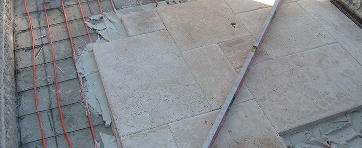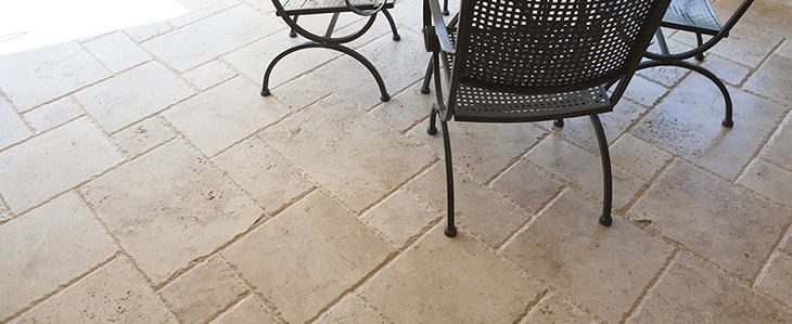 Montaż podłogi tarasowej za pomocą zestawu trawertynowego Classic Cross Cut French Pattern z wykończeniem Tumbled